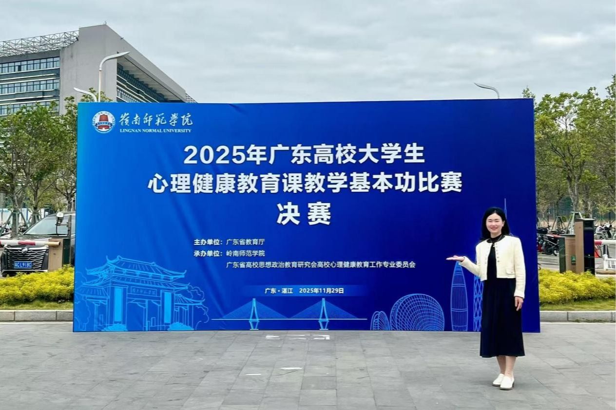 近日,2025年广东省高校大学生心理健康教育课教学基本功大赛决赛圆满收官。我校博雅学院大学生心理健康教育教研室教师、商学院辅导员陈金玲凭借深厚的教学功底和极具感染力的课堂呈现脱颖而出,斩获省级二等奖,实现我校在该项赛事中的历史性突破。 此次决赛采用“四选一”现场抽题与限时备课的高难度赛制,全方位考验教师的教学积淀、临场应变与课堂驾驭硬实力。面对挑战,陈金玲老师从容不迫,快速、精准构思教学方案,以清晰的授课逻辑、...