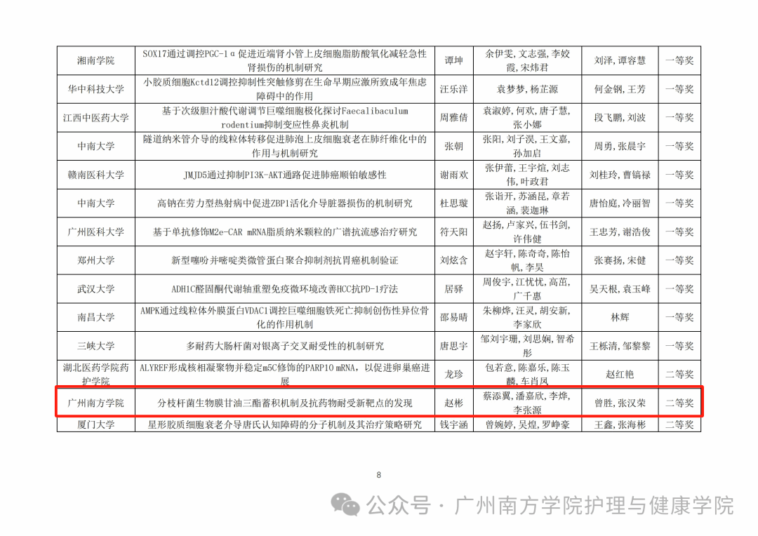 护理与健康学院高度重视医学创新人才培养和科研实践育人工作,凭借资源支撑与专业指导,全力推动学生投身医学创新探索。此次赛事佳绩,生动彰显了我院学子扎实的专业功底与蓬勃的创新活力。学院将持续厚植医学创新培育土壤,以赛事为教学赋能、以科研为发展蓄力,用科研突破和人才成长,助力我院筑牢医学创新育人根基,为医学事业发展注入源源不断的青春动能。