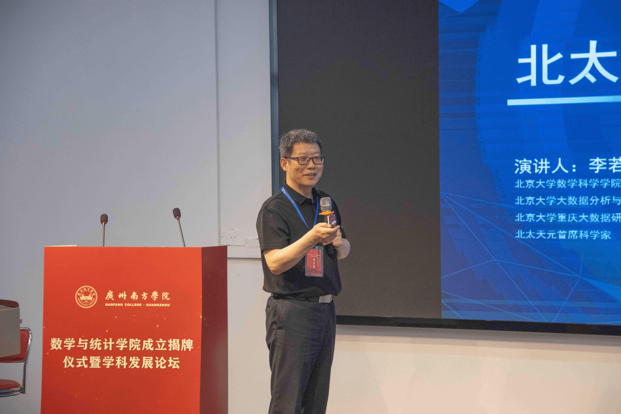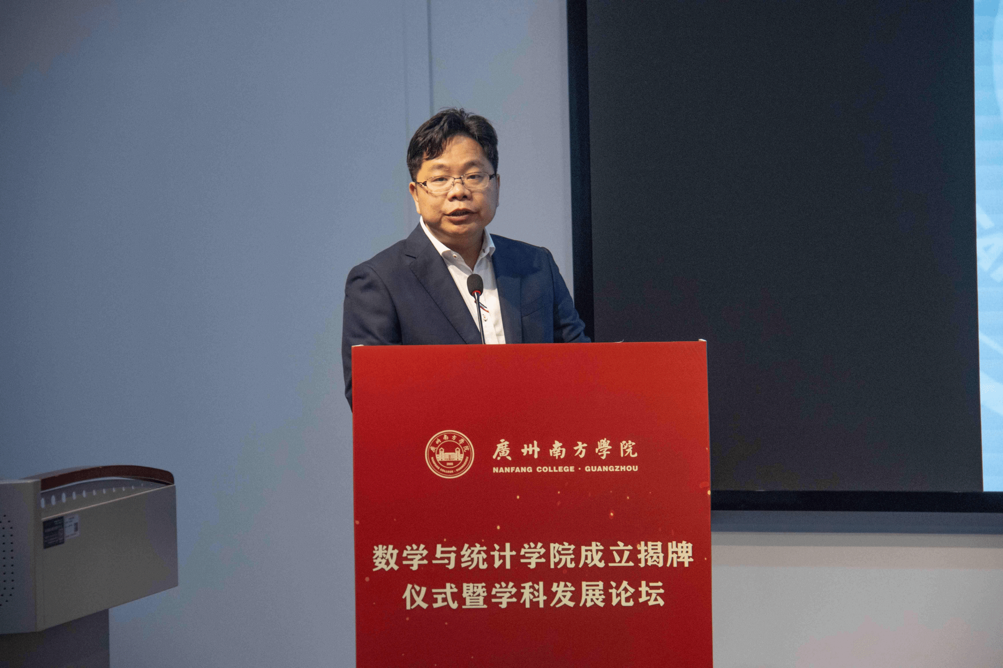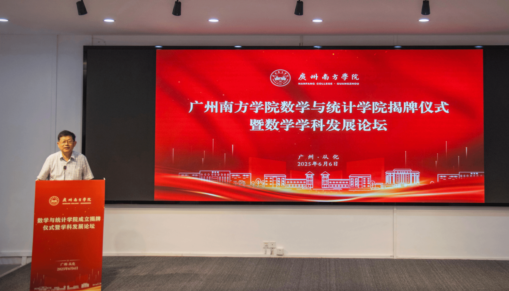 June 6, 2025 – Nanfang College, Guangzhou (NCG) celebrated the official launch of its School of Mathematics and Statistics with an inaugural ceremony and an academic development forum on mathematical disciplines. The event welcomed nearly 40 distinguished guests from esteemed academic institutions, universities, and enterprises, including the Chinese Academy of Sciences, Peking University, Shanghai Jiao Tong University, Sun Yat-sen University, Shandong University, Jilin University, Xiangtan University, National Center for Applied Mathematics in Hunan, and Beitai Zhenhuan (Chongqing) Technology Co., Ltd. President Tang Tao, Academician of the Chinese Academy of Sciences, Party Secretary Li Jianchao, university leaders, and over 300 faculty and student representatives attended. The ceremony was chaired by Vice President Professor Liu Wenbin.
