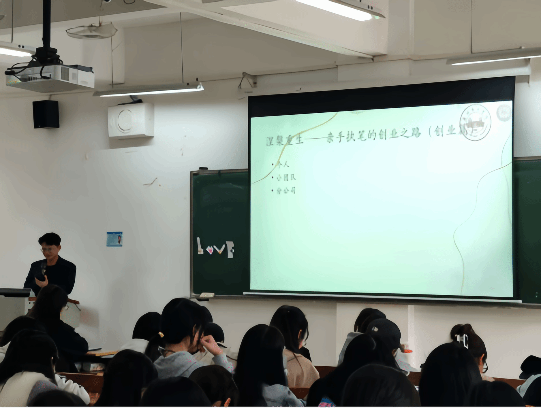 谈及创业历程,黄志鹏校友分享了最真切的感悟:创业这张蓝图,全凭自己手中的“画笔”勾勒。它从不止于“卖东西”的表层动作,更要兼顾定价策略、团队管理、资金规划等,还要考量渠道拓展、平台规则与政策适配,每一个环节都需落笔审慎。他强调,用好这支“笔”,必先如建房子般做好顶层设计——从整体框架的图纸规划出发,自上而下完成全维度布局,再以实干姿态躬身入局,切勿空谈构想、纸上谈兵,也忌盲目蛮干、毫无章法,唯有先立框架再落笔行动,在实践中试错、在探索中校准笔触,才能用手中的“笔”,稳稳绘就出实实在在的创业成果。