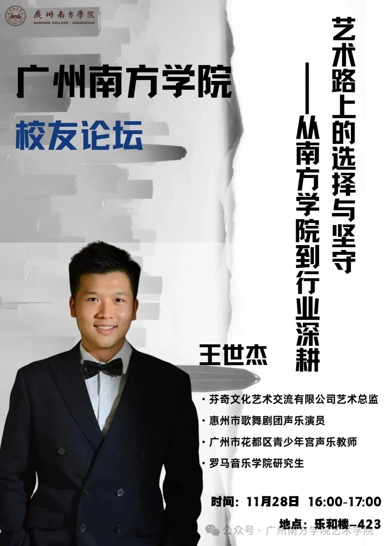 在一次行业大师班的活动中,王世杰校友被现任职公司的专业团队与国际艺术交流平台吸引,凭借扎实的专业素养,他主动对接实现职业转型。目前,他在艺术展演、留学教育、政务互访三大业务板块中发挥专长——参与保利剧院歌剧演出策划、助力学子海外艺术留学、搭建中意政府文化交流桥梁,其意大利语能力与声乐专业背景成为核心优势,真正实现从“专业人才”到“复合型职场人”的转变。