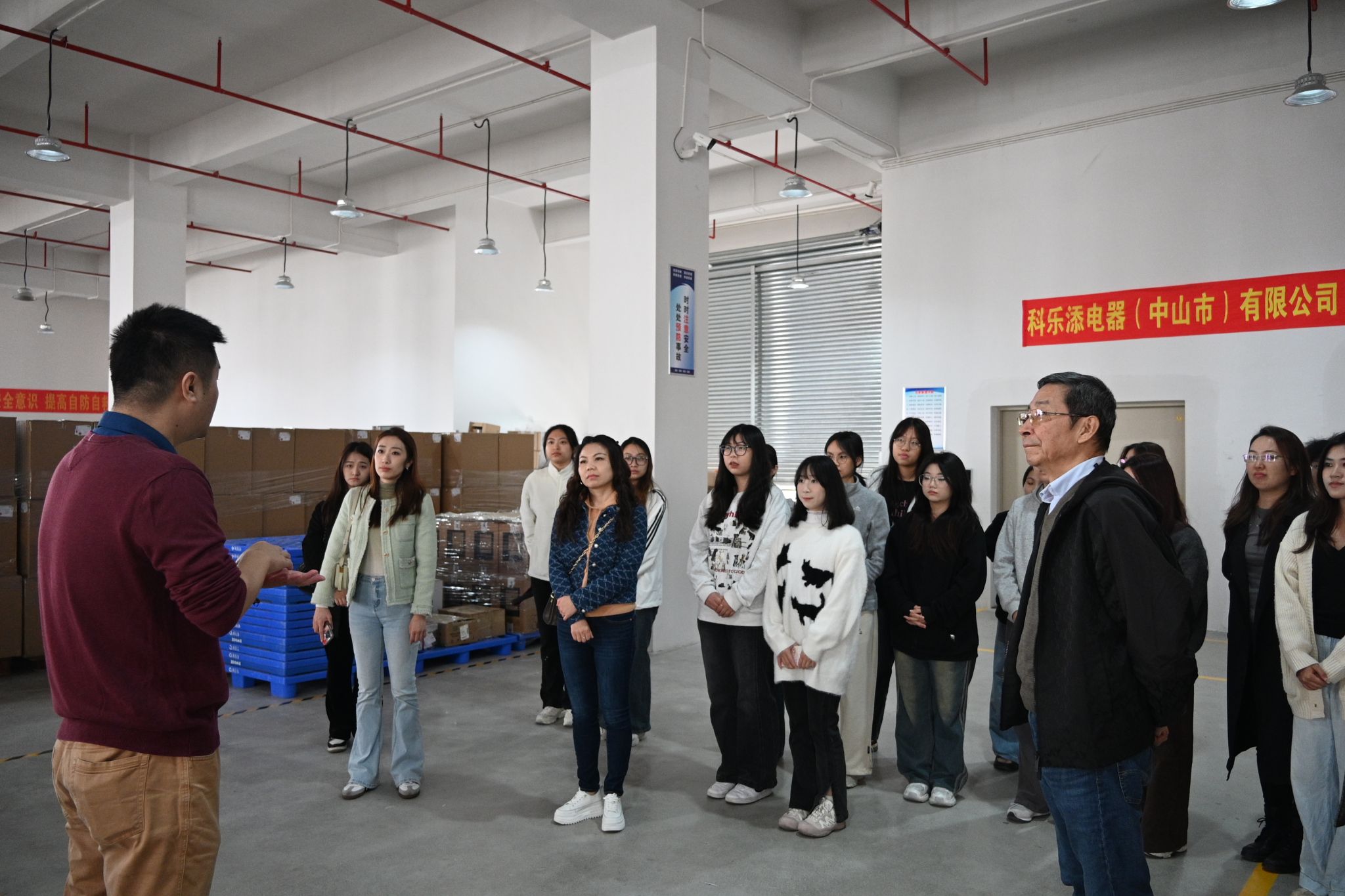2024年12月6日,我校校友会开展了第六站“读万卷书,行万里路”在校生企业游学活动。由校团委书记、校友会秘书长陈思思老师带队,文学与传媒学院孙立院长、校团委副书记路亦川老师、校团委老师及与来自不同院系不同年级的学生们组成一行23人的游学团,共同走访了我校文学与传媒学院2010届刘学欧校友的企业——深圳贝拉比母婴智能科技有限公司(中山市贝拉比生产基地)。