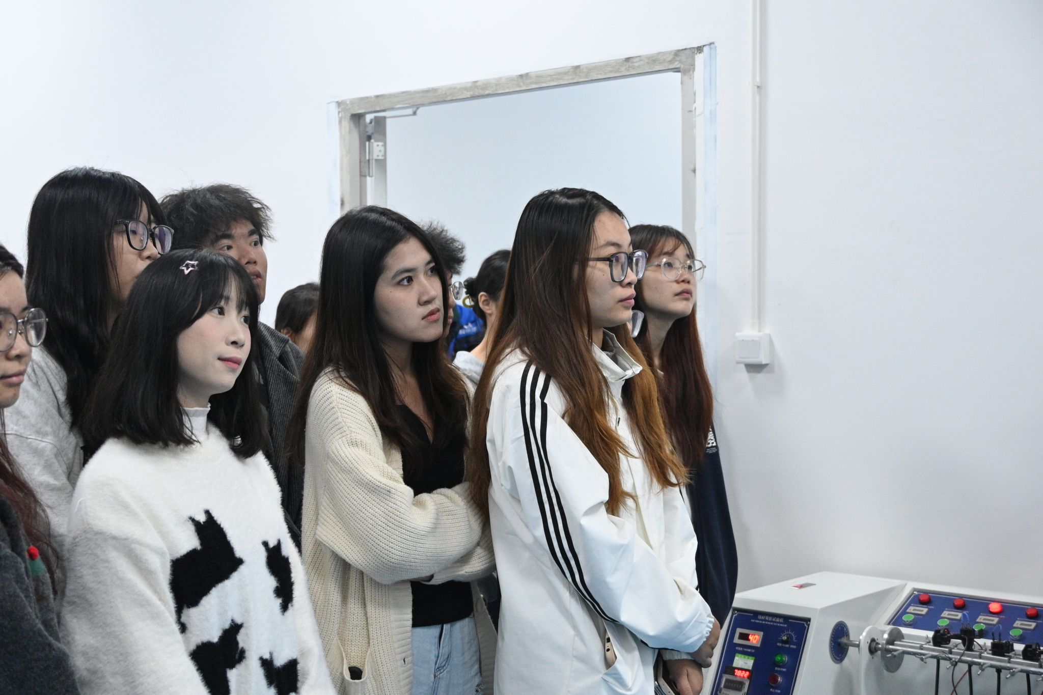 接着,刘学欧校友带领大家前往参观刚刚搬迁至中山市的贝拉比生产车间。随着我们的到来,现场气氛热烈而喜庆,大家纷纷打响礼炮,以祝贝拉比的乔迁之喜。随后,刘学欧校友详细介绍了发明专利、资质认证、车间消防工作、多功能实验室对产品的测试和加工生产线等生产质检流程。通过这次参观,使我们不仅对贝拉米的产品和生产流程有了更直观的认识,也深刻感受到了现代化工厂管理模式、消防设施和质检检测的重要性。
