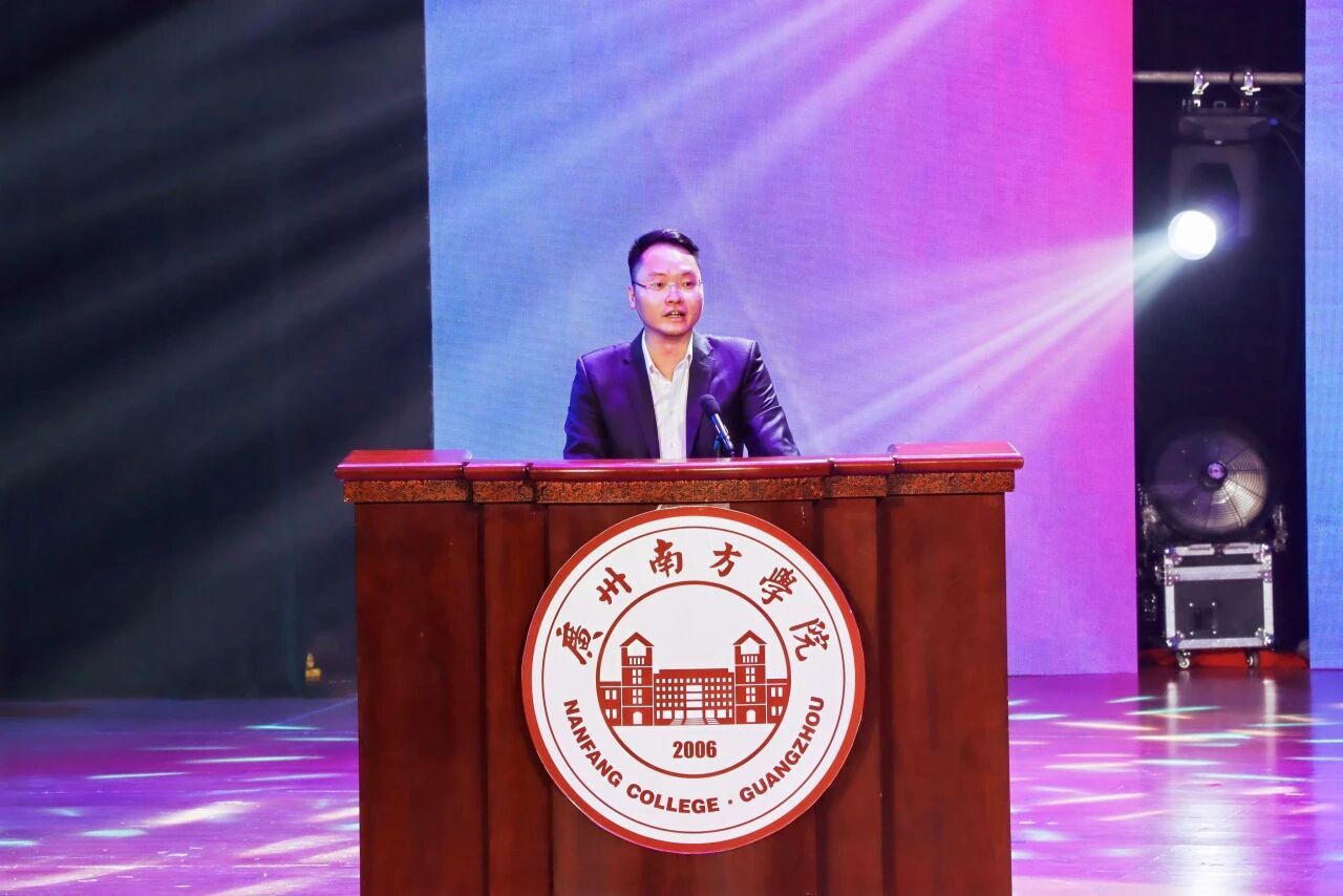 优秀校友代表、2015届市场营销专业毕业生邹裕科在开幕式上发言。他回顾了在母校求学的青葱岁月,感谢母校赋予的专业知识与精神力量。他分享了自己毕业十年来的创业历程,表示母校的校训始终激励着他不断前行,给了他创业路上许多精神力量,未来也将不忘初心,与母校携手成长。