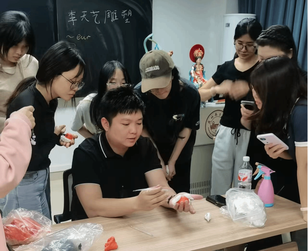 10月27日,晚上18:30-21:30,新综合楼518教室变成面塑艺术的小天地。李宏天老师带着丰富的材料和作品,与同学们一起创作。在充满浓厚艺术氛围的课堂上,李宏天老师不仅仅专注于教授面塑的技法,也热情地向同学们介绍了自己倾注心血的天艺工作室。多年来,工作室就像一个温暖的港湾,承载着无数面塑作品的诞生,也见证了他在传承非遗道路上的点点滴滴。