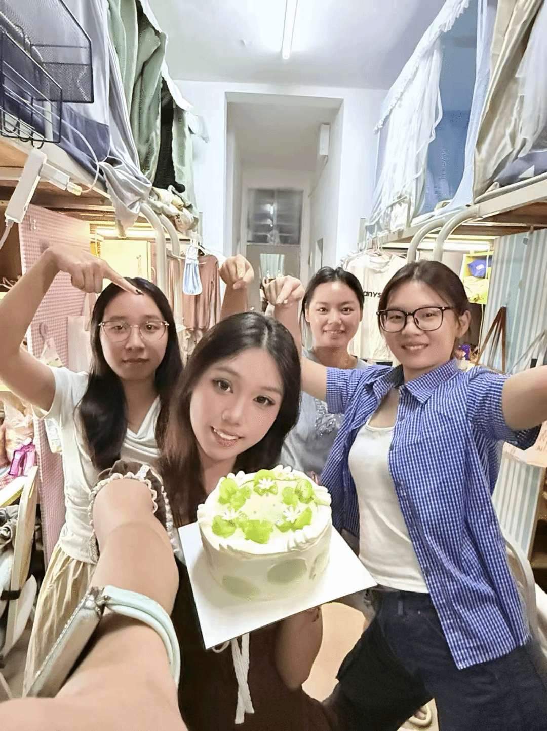 第七个出场的宿舍是东14-508。该宿舍代表以一次回忆中的肯德基开始,虽然大家才相识了六个星期,但是大家都非常的友好,从初见时的客气寒暄,到现在随手分享的零食,陌生感早已被一次次迁就与包容消融。她表示,这顿肯德基不是什么山珍海味,却藏着最纯粹的温暖——原来青春里最动人的,从来不是轰轰烈烈的遇见,而是短短六周里,他们从“同学”变成了愿意分享快乐、彼此陪伴的家人。这样的小美好,值得用镜头永远留住。