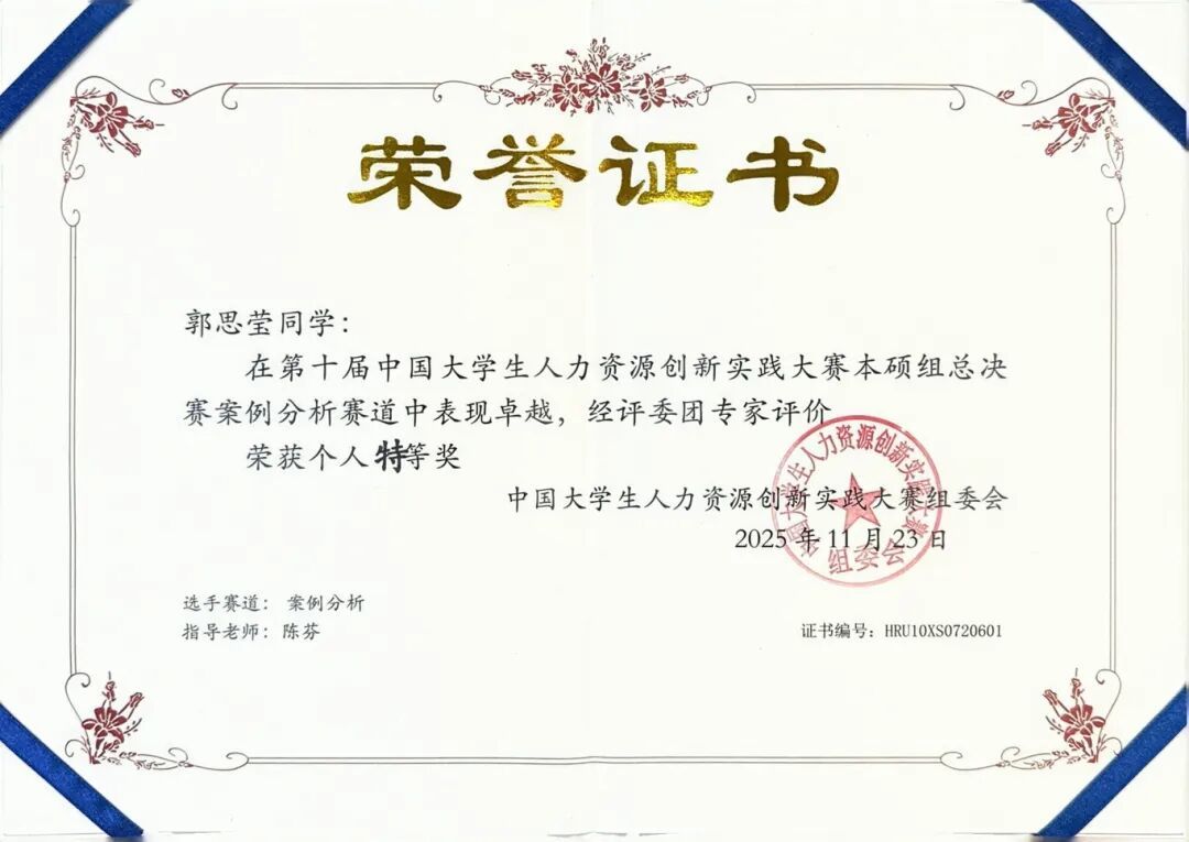 陈芬老师的专业指导下,郭思莹同学在案例分析赛道中荣获个人特等奖