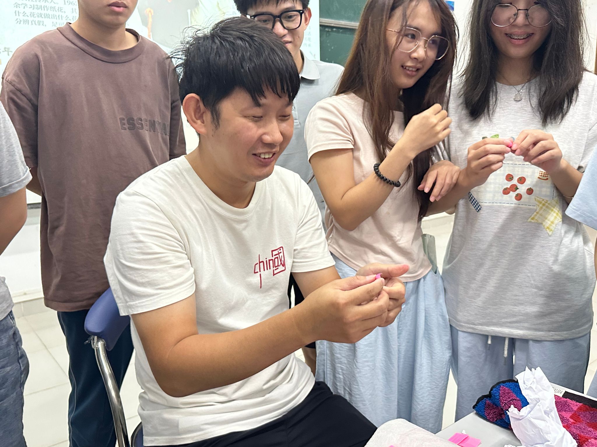 学生在课堂上做的纸花