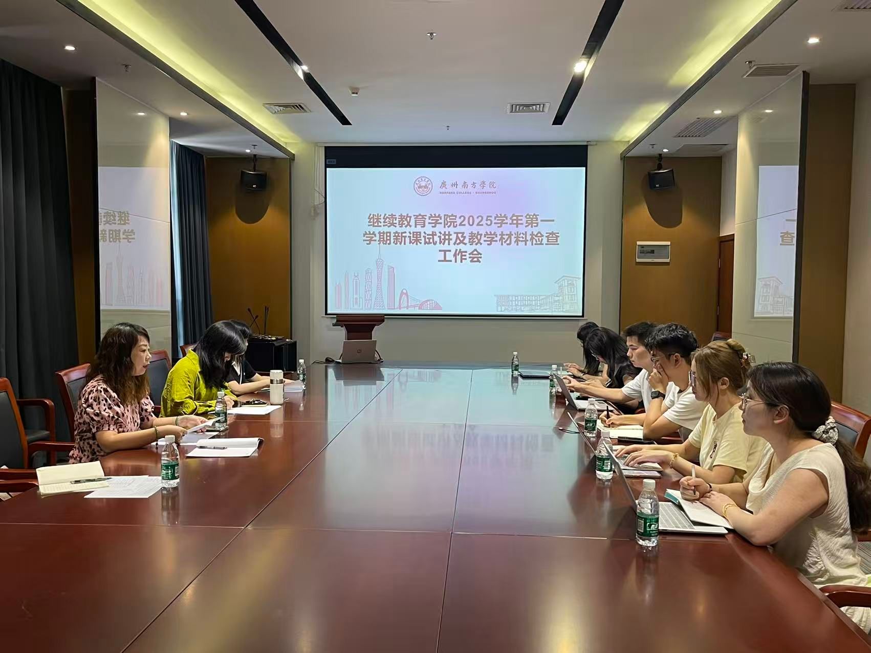为确保新学期教学工作顺利开展,提升教师授课水平与课程质量,继续教育学院教研室于2025年9月11日下午在中和楼第二会议室组织开展2025学年第一学期新课试讲及开学教学材料检查活动。本次活动由教研室主任汪洋主持,教研室成员参加。