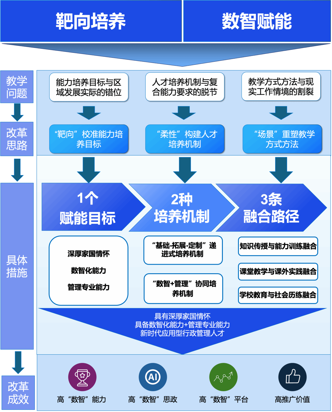 本次获奖的教学成果充分展现了我院在教育教学改革方面的显著成效。该成果立足数智时代大湾区的人才需求,系统构建了基于靶向培养、数智赋能的“123”应用型行政管理人才培养模式,并且通过该模式在我院四个专业的有效推广实施,取得了高“数智”能力、高“数智”思政、高“数智”平台、高推广价值的显著成效。