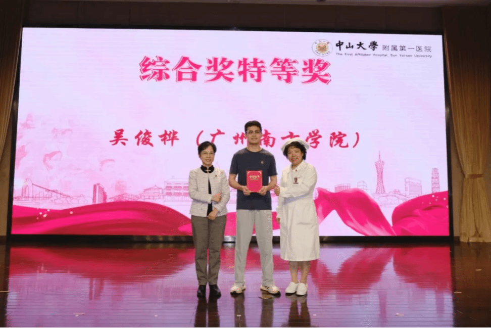 通过十个月的实习,吴俊桦总结出了“心理上胆大”和“行动上心细”两个要义,对于实习生来说,每次操作的机会都十分宝贵,在带教老师“放手不放眼”的情况下大胆上手,敢于尝试,以严谨细致的态度对待每一项操作,通过每次实践机会总结临床经验和提升临床技能。正是做到胆大心细,吴俊桦在中山大学附属第一医院本科实习生技能比赛中展现出娴熟扎实的基本功,操作沉着冷静,同时以细致的洞察力识别案例中的“陷阱”,在13所学校的实习生中脱颖而出,收获了综合特等奖(唯一)、静脉输液最佳单项奖一等奖、CPR最佳单项奖二等奖以及优秀实习生多项荣誉。