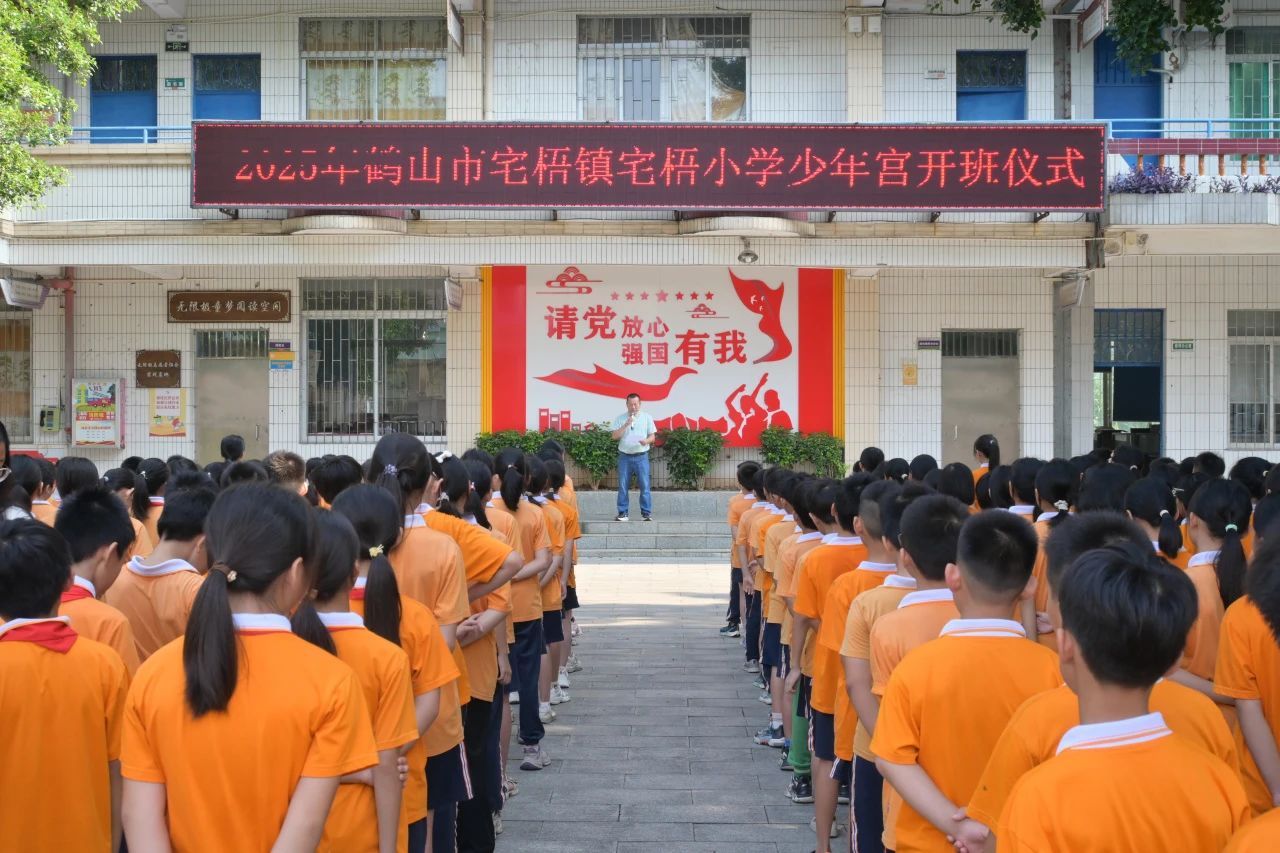 7月7日上午,宅梧小学在学校小广场举行了乡村少年宫开班仪式,范国庭校长发表讲话。他表示,少年宫为农村孩子提供了拓展视野、增长见识、提升能力的机会,鼓励学生们珍惜这次学习机会,积极参与各项活动,增强体质、磨炼意志,团结互助、共同进步,全面提升自身素质,为将来成长为社会栋梁打下坚实基础。同时,他对支教老师们的辛勤付出表示感谢,并预祝本次活动圆满成功,希望少年宫越办越好,真正成为孩子们健康成长的快乐家园。