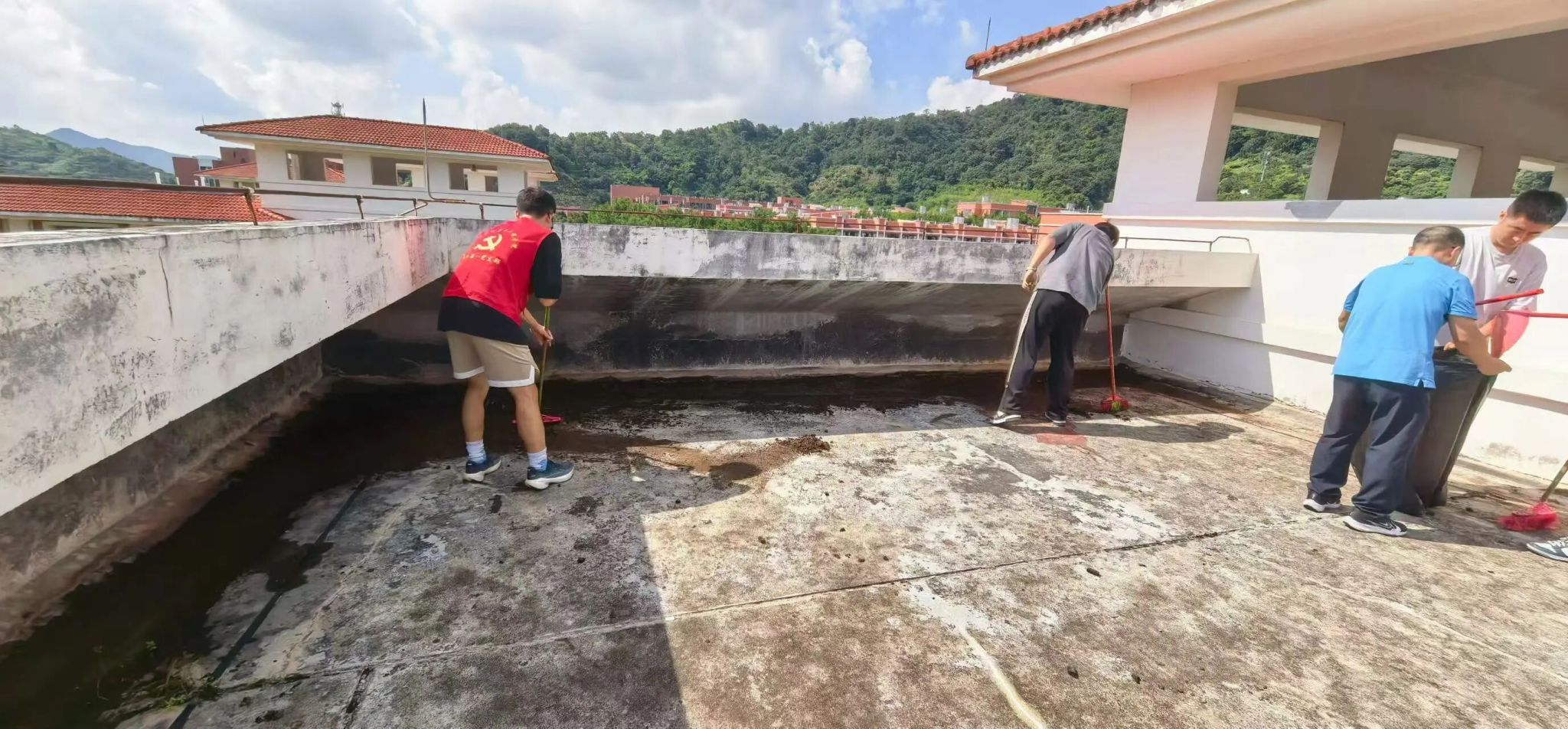 为预防基孔肯雅热的传播,老师和同学们还前往屋顶清理了积水,他们认真清洁屋顶的每一个角落,从源头上避免蚊媒滋生,为防范基孔肯雅热筑牢防线。从校园街道到屋顶角落,从清扫落叶到清除积水,每一处都留下了设计学院师生勤劳忙碌的身影。
