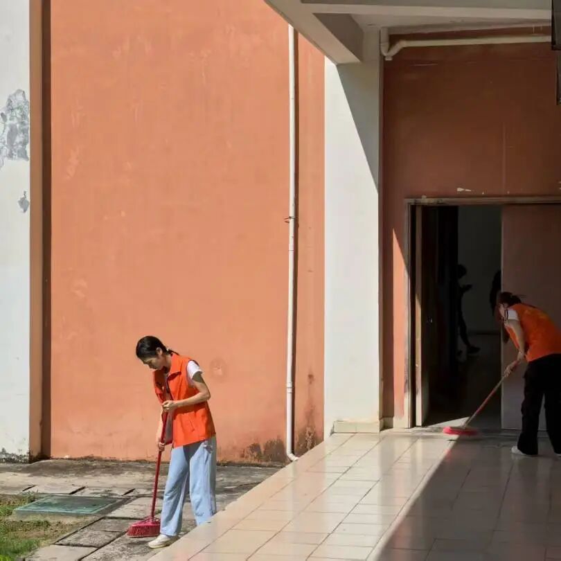 活动现场,志愿者携带扫帚、簸箕等清洁工具,对教学楼公共区域进行了全面清扫。整个过程中,大家分工明确,秩序井然:有的清扫地面的落叶与灰尘,有的仔细擦拭楼道扶手与窗台,不放过任何一处卫生死角。大家相互协作,用实际行动为营造整洁、舒适的教学环境贡献力量。