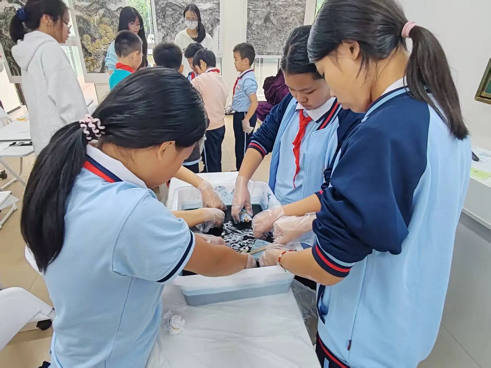 秋叶飘零,秋光正好。2025年11月4日下午,文学与传媒学院语言文字服务团队在游婉雯老师的带领下前往从化区善施学校,与同学们共同开启扎染手帕的非遗课堂。本次课程的小老师由2024级汉语言文学专业的卢湘敏担任。