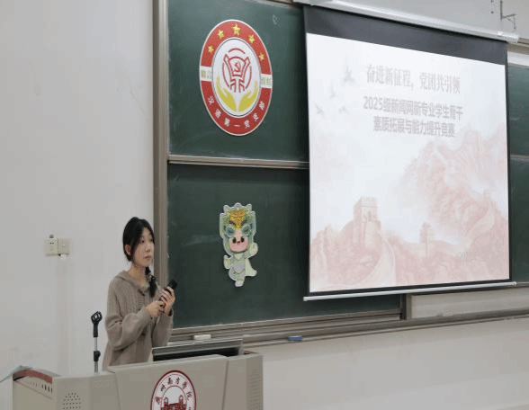 12月10日下午,文学与传媒学院新闻网新专业2025级学生骨干素质拓展大会在一教304教室举行。本次会议以“聚力筑才,引航未来:班级管理进阶与职业发展启航”为主题,辅导员徐硕老师、2025级新闻网新的学班、各班班长以及学生助理共16人参会。由网新一班的学班汪淦来主持本场会议。