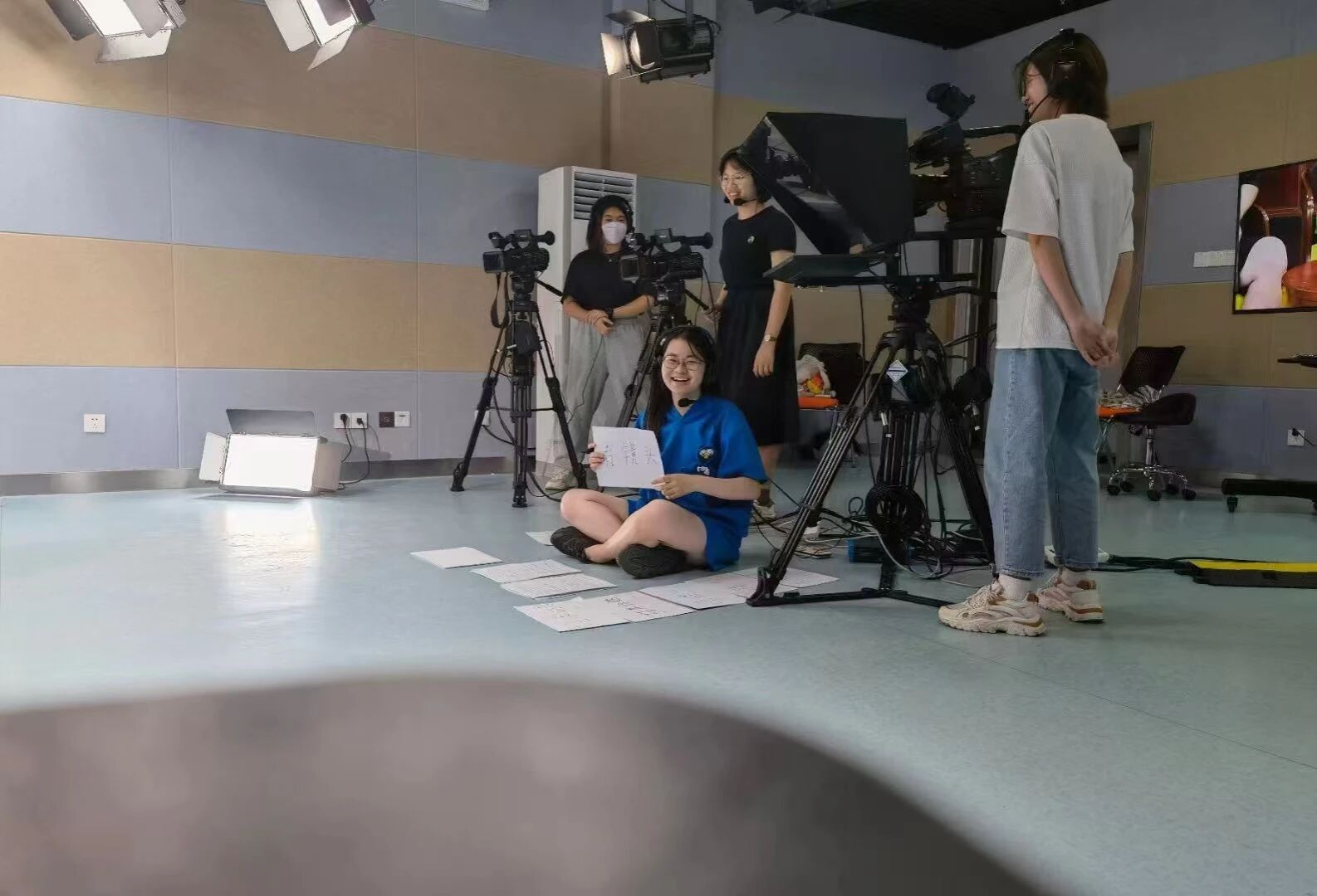 在摄影棚里和朋友一起